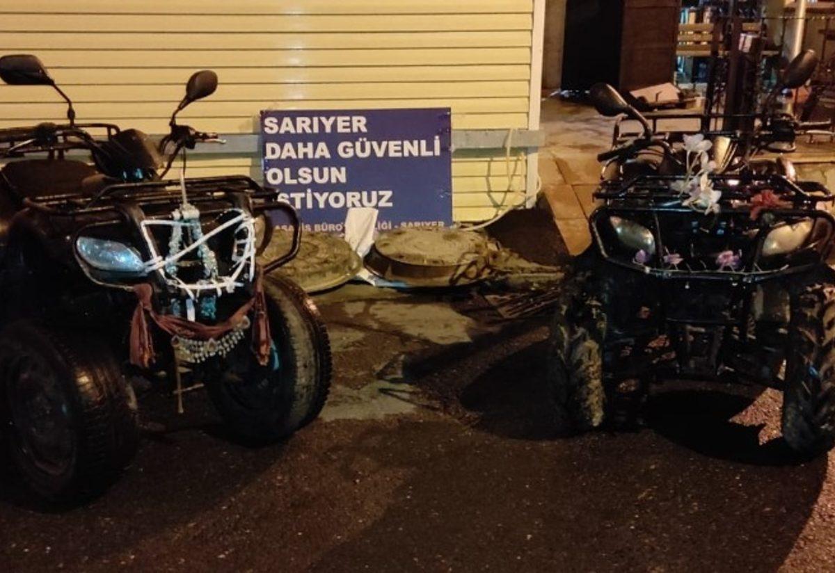 Sarıyer İlçe Emniyet Müdürlüğü ekipleri, Keçiburnu Mahallesi’ndeki bir sokak üzerinden 2 ayrı mazgalın çalınması üzerine hareket geçti. Güvenlik kamera görüntülerini inceleyen polis ekipleri, hırsızların ATV motor kullanarak mazgal kapaklarını çaldıklarını ve hurdacıya sattıklarını belirledi. Olayla ilgili araştırma başllan polis ekipleri Pakistan uyruklu N.M.K., N.U. ve Afganistan uyruklu R. K. isimi zanlıları gözaltına aldı. Zanlılar ile birlikte biri çalıntı iki adet ATV motor da ele geçirildi.