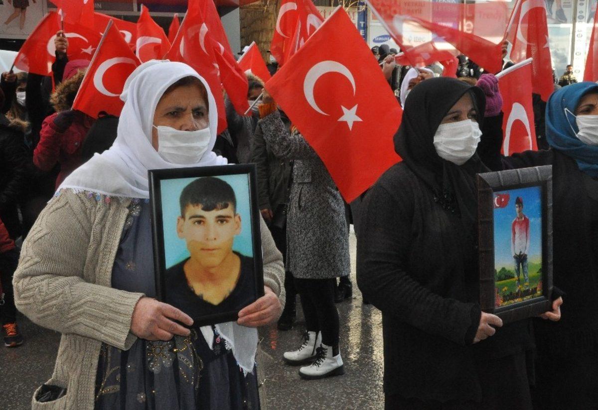 Şırnak’ta çocukları terör örgütü PKK mensupları tarafından dağa kaçırılan anneler, HDP il binasına yürüyerek HDP’den çocuklarını istedi.Yakınlarını terör saldırılarında kaybeden Şırnaklı kadınlar ile şehit ve gazi aileleri, Şehit Üsteğmen Mehmet Esin Caddesinde gerçekleştirdikleri yürüyüşün ardından HDP İl Başkanlığı binası önüne geldi.