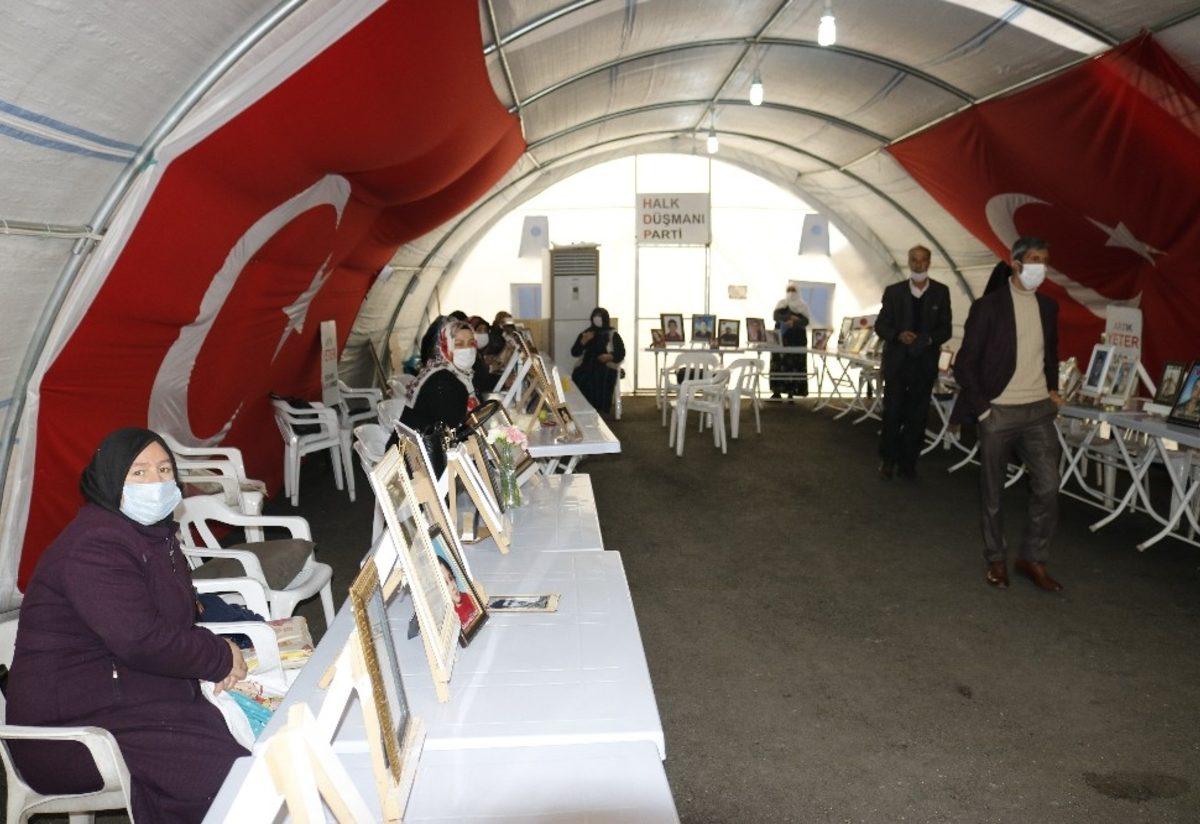 Çocuklarının terör örgütü PKK mensupları tarafından dağa kaçırıldığı iddiasıyla HDP Diyarbakır İl Başkanlığı önünde oturma eylemi başlatan ailelerin evlat nöbeti 497 gündür devam ediyor.