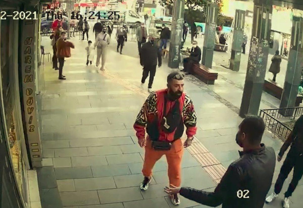 Taciz olayı, bölgedeki bir işyerinin güvenlik kameraları tarafından da kaydedildi. Görüntülerde trafiğe kapalı yolda eşi ve çocuğuyla yürümekte olan kadın çocuğuyla ilgilenmek için durduğu anda şüpheli F.K.’nın elle taciz ettiği anlar kayıtlara girdi. Tacizin ardından hiçbir şey olmamış gibi yoluna devam eden şüphelinin arkasından koşan kadının eşiyle tartışması da görüntülere yansıdı.