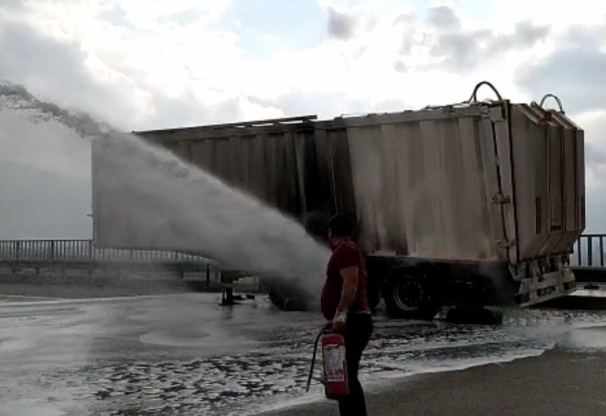 İtfaiye ekiplerine bilgi veren polis ekipleri, yangının daha fazla büyümemesi için TOMA’da bulunan suyla alevlere müdahale etmeye başladı. TOMA’nın müdahalesiyle tırın dorsesinde çıkan yangın, kısa sürede kontrol altına alınırken bu anlar diğer sürücüler tarafından cep telefonu ile kaydedildi. Ekipler, yangın söndürüldükten sonra bölgeden ayrılırken, tır sürücüsünün sağlık durumunun iyi olduğu öğrenildi.