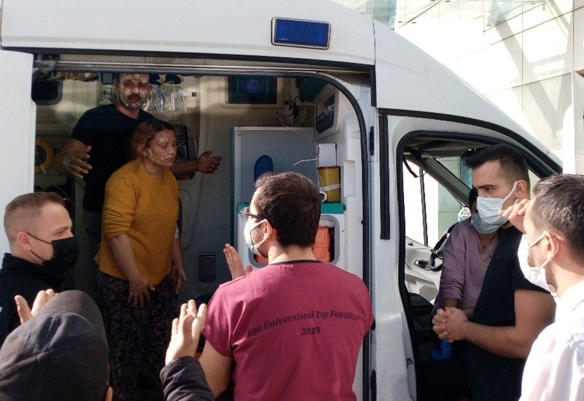 Mesut Alakara’dan gelen üzücü haberi duyan anne Emine Alakara, oğlunu görmeye geldiği hastanede gözyaşlarına boğuldu. Ayakta durmakta güçlük çeken Emine Alakara, “Ne yaptın da kendini yaktın canım oğlum. Bu kadar saf olma çocuğum. Yandı yavrumun yüzü gözü kıyamam ben sana. Saf oğlum benim, vah güzel oğlum” diyerek gözyaşı döktü.