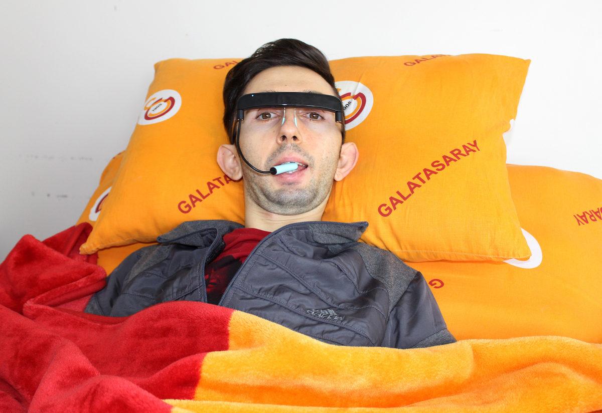 Aslı DURAN/ANTALYA, (DHA) - ANTALYA'da, 4 yıl önce break dans yaparken, düşmesi sonucu boynundan aşağısı felç olan Emre Kara (31), telefonun dokunmatik kalemini ağzıyla kullanarak, çektiği videolarla fenomen oldu. Çin'de yaşayan Türk girişimci Mehmet Türker (29), felçli hastaların sadece baş hareketleriyle akıllı telefon ve bilgisayar kullanabildiği özel gözlüğü Kara'ya hediye etti. Emre Kara, artık videolarını daha rahat çekiyor.