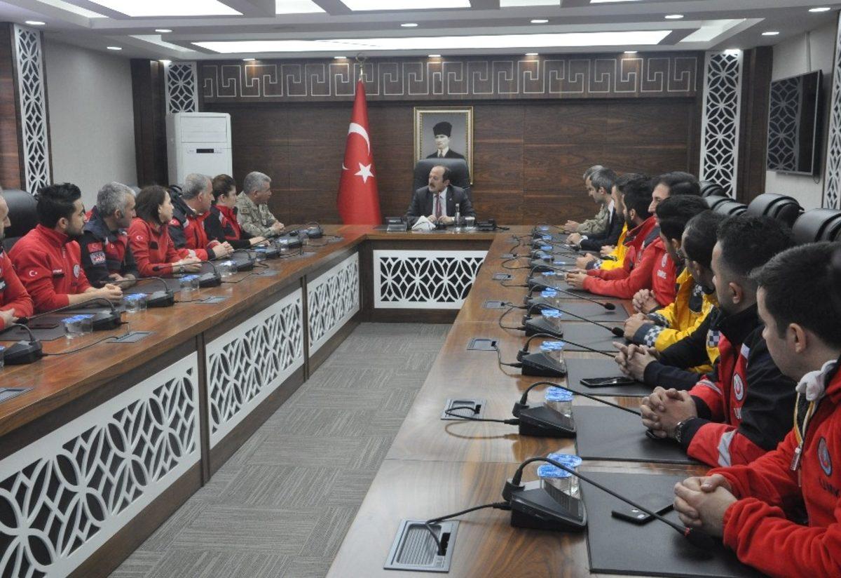 Sağlık personeliyle tek tek tanışan Şırnak Valisi Ali Hamza Pehlivan, gösterdikleri üstün başarıdan dolayı kendilerini tebrik etti. Böyle bir felaketin bir daha yaşanmaması temennisinde bulunan Vali Pehlivan, ekibi başarı belgesi ile ödüllendirdi. Burada konuşan Vali Pehlivan, 45 vatandaşın enkazın altından sağlıklı bir şekilde çıkarıldığını hatırlattı. Vali Pehlivan, “Burada elbette sizlerin de katkısı oldu. Ben sizlerin şahsında bu arama kurtarma faaliyetlerinde görev alan bütün personeli, çalışma arkadaşlarımızı, yurt genelinde katılan herkesi Şırnak’tan bir kere daha şükranla selamlıyorum. Şükranlarımızı teşekkürlerimizi Şırnak adına da şahsımız adına da iletmek istiyorum. Ben sizleri döndüğünüzde görmek istedim, çünkü hakikatten bu kıyafetler içerisin de görünce duygulandık. Çünkü orada dramatik hikayeler vardı, hepimiz gözlerimiz dolarak izledik. Tabi deprem doğal bir afet tahmin edilemiyor ne zaman geleceği nerede yaşanacağı. Ülkemiz de bir deprem bölgesi sizler gibi böyle özellikle de deprem sonrası yaraların sarılması vatandaşlarımızın enkaz altından çıkartılması konusun da yetişkin yetkin arkadaşlarımızın olması da bizleri gururlandırıyor” dedi.