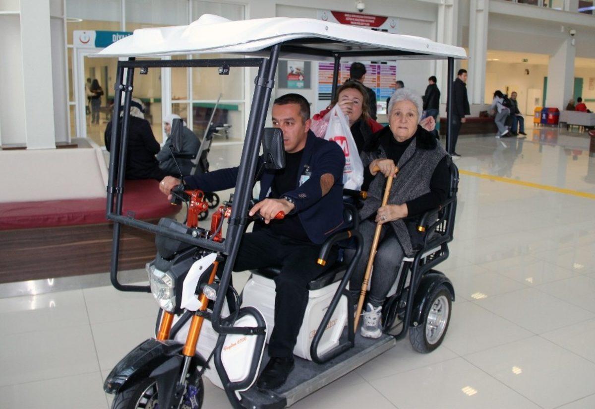 Muğla Sıtkı Koçman Üniversitesi Eğitim ve Araştırma Hastanesinde polikliniklere ulaşmakta zorluk çeken yaşlı ve engelli vatandaşlar için elektrikli golf bisikletleri hizmet vermeye başladı.