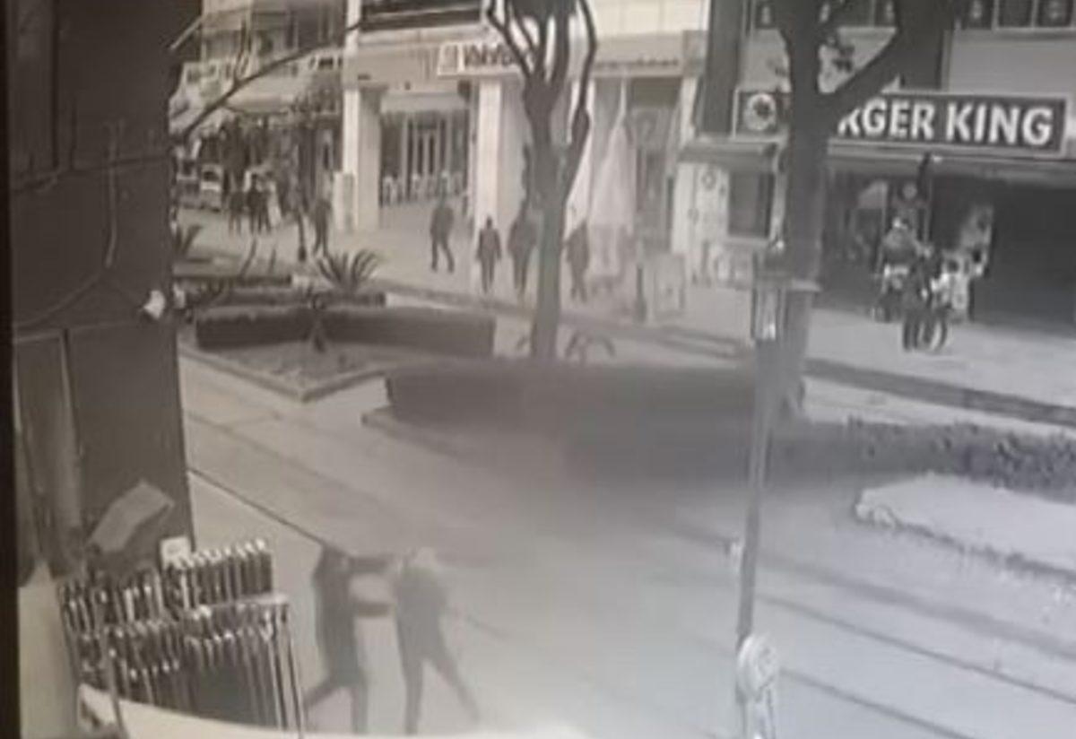 Kavga anı bir işyerin in güvenlik kamerasına saniye saniye yansıdı.