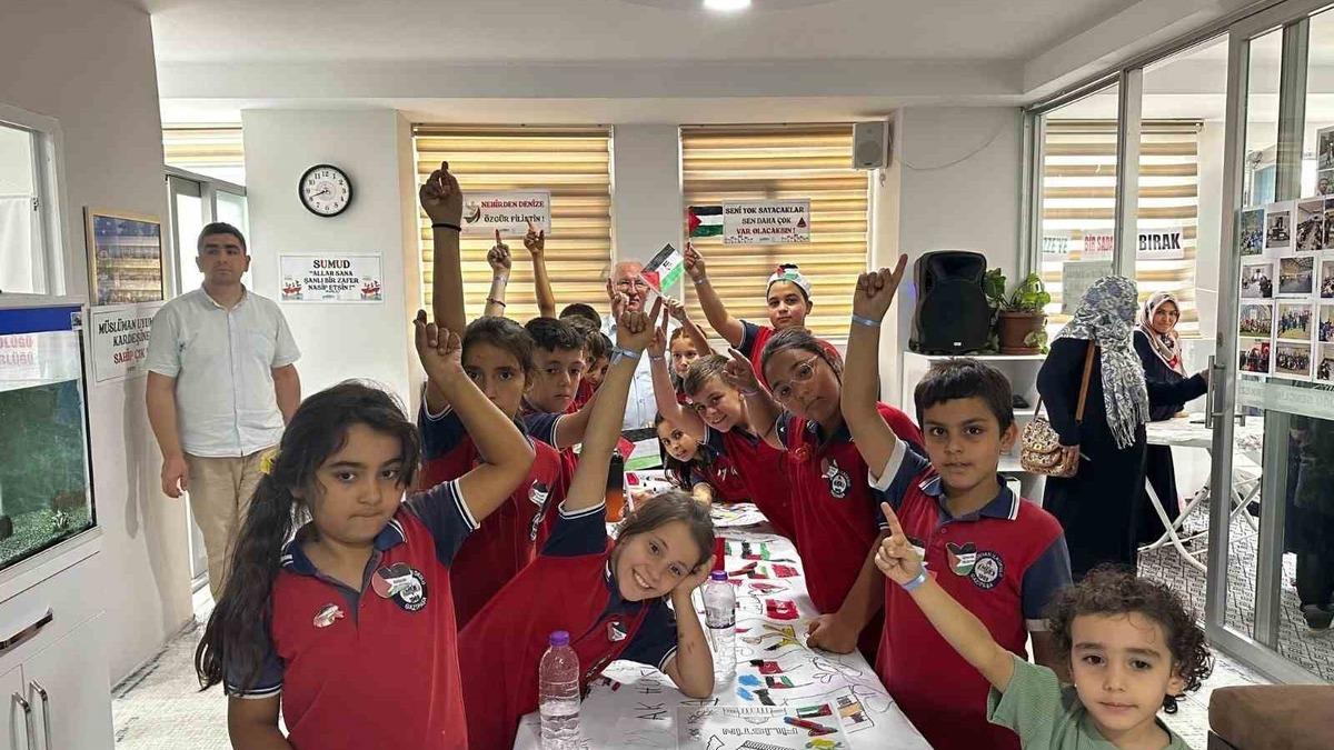 Antalya’nın Gazipaşa ilçesinde öğrenciler, Gazze’de hayatını kaybeden çocuklar için resimler çizdi.