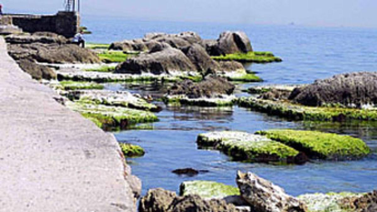 Çanakkale'nin Gelibolu ilçesinde etkili gelgit dolayısıyla Hamzakoy Feneraltı mevkii ile iskele yakınlarında bulunan kayaklıklar su üstüne çıktı.