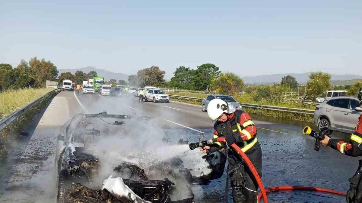 Yangın, Aydın İzmir otoyolu üzerinde meydana geldi. Edinilen bilgiye göre, Germencik Gişeleri mevkiinde otoyol üzerinde ilerleyen otomobilden bir anda alevler yükselmeye başladı. Araç sürücüsü aracını yol kenarına çekerek Acil Çağrı Merkezi’nden yardım istedi. Olay yerine gelen Aydın Büyükşehir Belediyesi itfaiye ekipleri sevk edildi. Olay yerine gelen ekipler otomobildeki yangına müdahale etti. İtfaiye ekipleri otomobildeki yangını söndürürken, araç kullanılmaz hale geldi. Yangınla ilgili inceleme sürüyor.