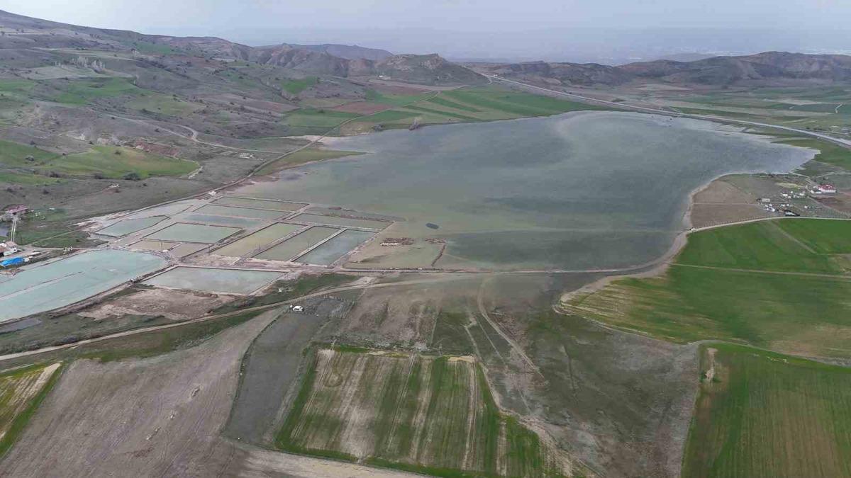Sivas’ta karların erimesi ve son günlerde etkili olan yoğun yağışlar, kent merkezine yaklaşık 12 kilometre uzaklıkta bulunan ve adını yanındaki köyden alan Bingöl Gölü’nü yeniden doldurdu. Yaz aylarında tamamen kuruyarak yerini tuz tabakasına bırakan göl, yağışların ardından dolup taştı. Göçmen kuşların sıklıkla uğrak noktası olan Bingöl Gölü’nün su seviyesinin yükselmesiyle birlikte, göl çevresindeki araziler sular altında kaldı. Taşkın nedeniyle göl suları yola kadar ulaşırken, bölgede bulunan bazı elektrik direklerinin de su altında kaldı. Sivas’ın öne çıkan doğal güzelliklerinden biri olan Bingöl Gölü’nün son durumu dron ile havadan da görüntülendi.