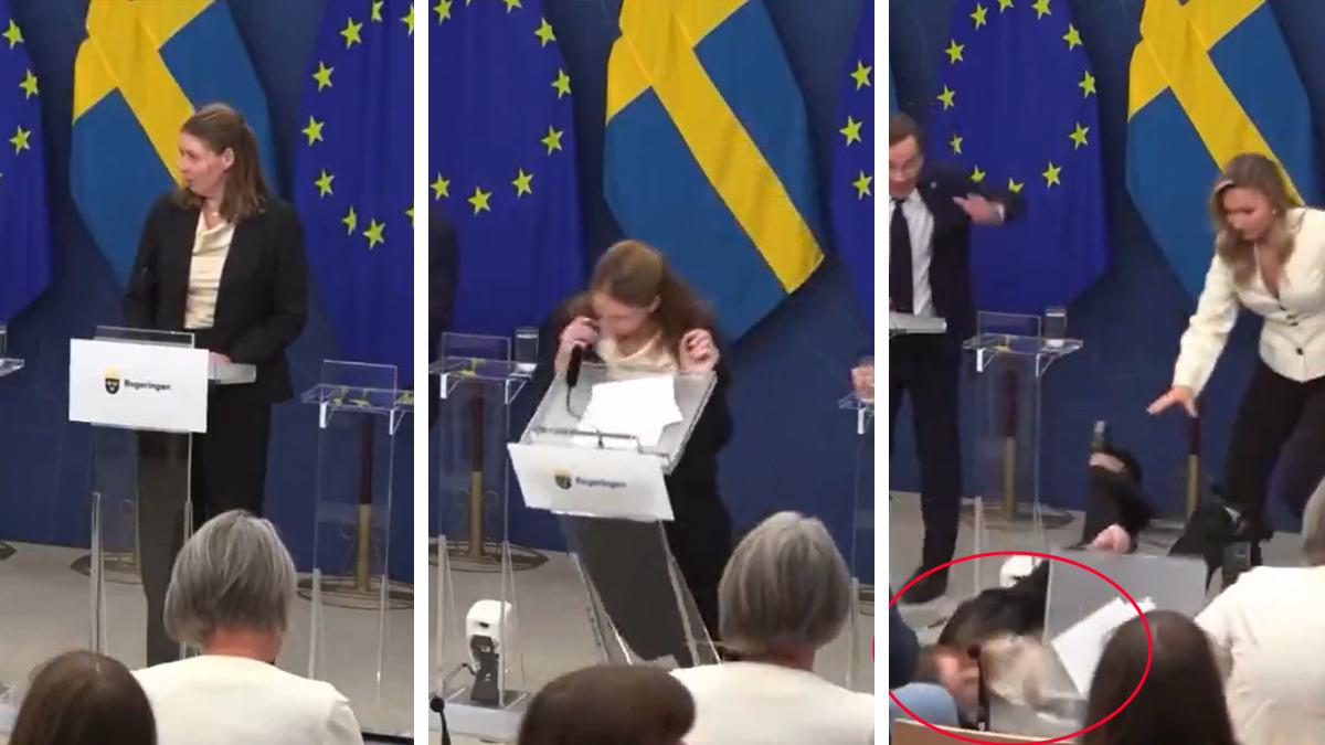 İsveç'in yeni Sağlık Bakanı Hristiyan Demokrat Parti üyesi Lann, Başbakan Ulf Kristersson ve diğer yetkililerle basın toplantısı gerçekleştirirken beklenmedik bir durum yaşandı.