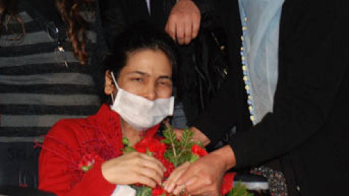 Yanında babası Haydar ve annesi Güllü Zere de bulunan Güler Zere'ye kapıda bekleyen bir grup tarafından çiçek verildi.
