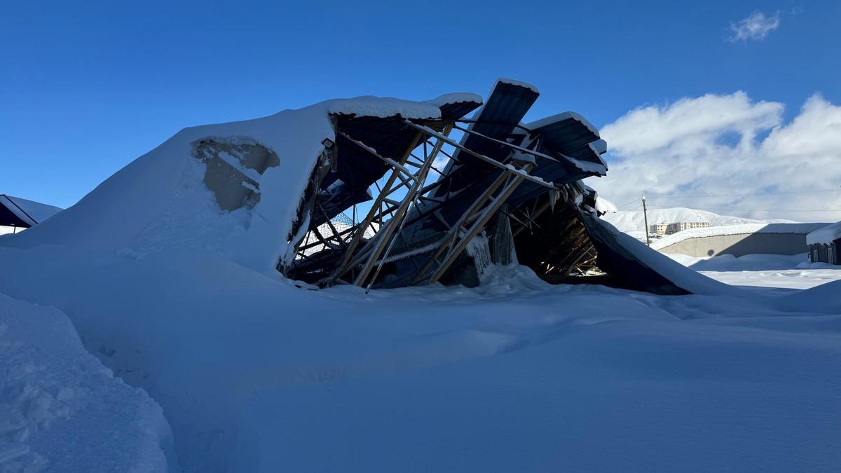Yüksekova ilçesinde de yoğun kar yağışı nedeniyle farklı noktalardaki 8 halı sahanın çatısı çöktü.