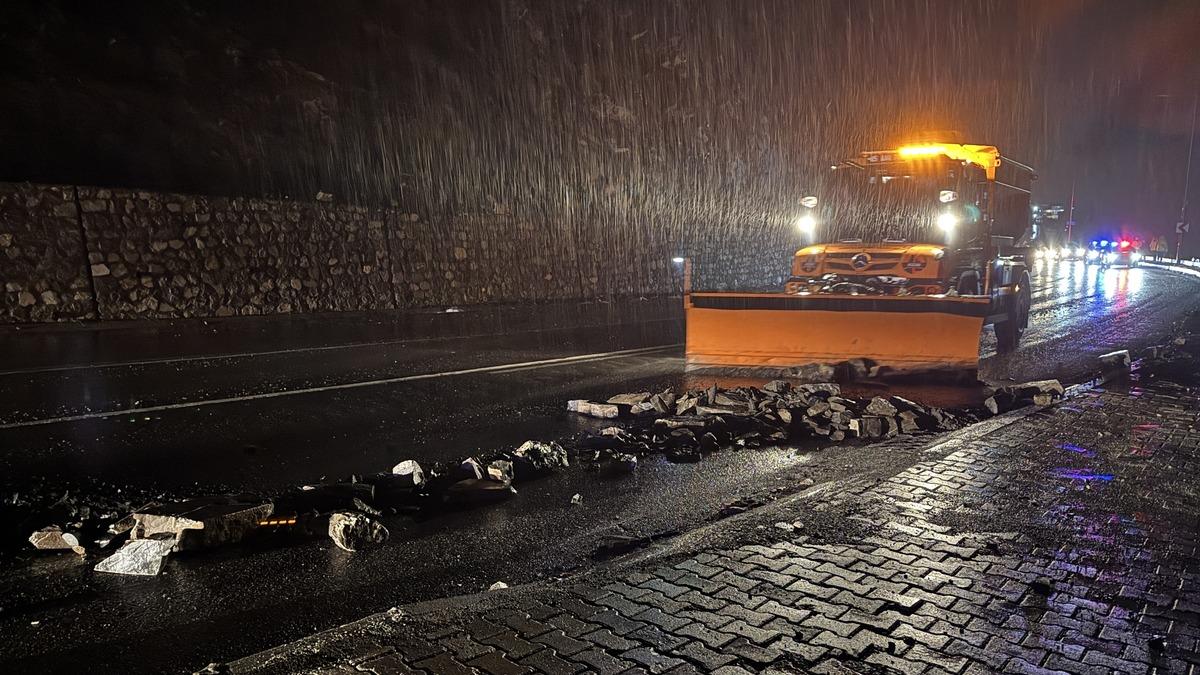 Ekipler, iş makineleriyle yoldaki kaya parçalarını kaldırarak trafik akışını sağladı.