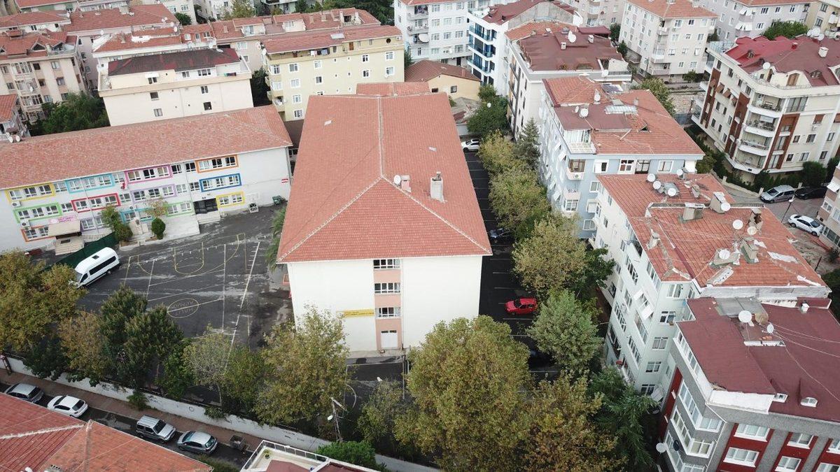 İnceleme nedeniyle tatil edilen Maltepe Halit Armay Anadolu Lisesi havadan da görüntülendi.