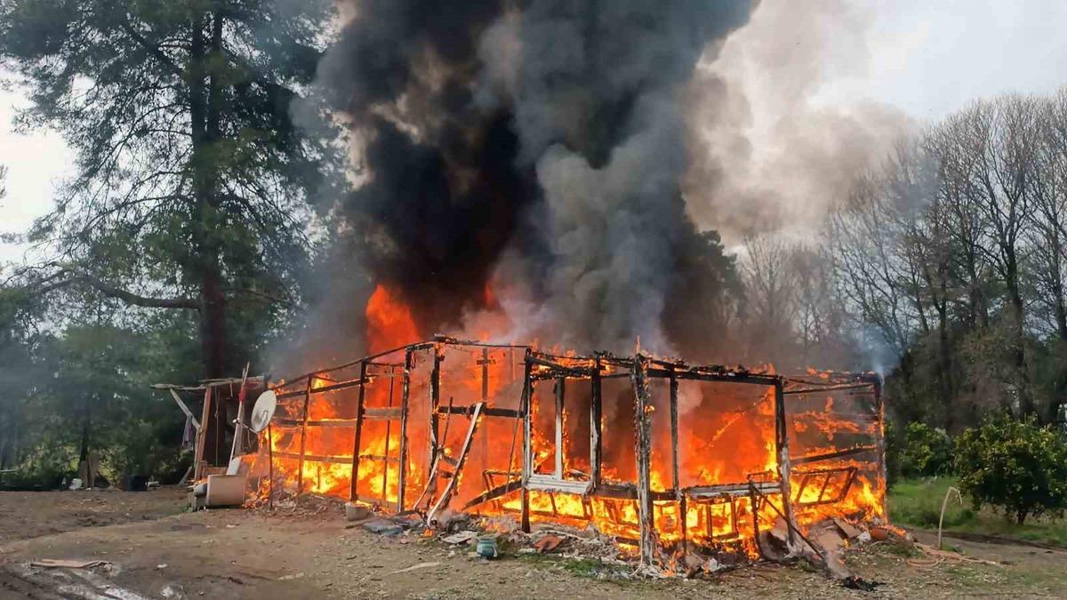 Muğla’nın Köyceğiz ilçesi Beyobası kavşağı mevkiinde hasır üretimi yapılan evde hasırların tutuşması sonrası hasır ev tamamen yandı.