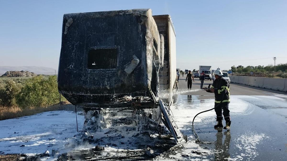 Hatay’da seyir halindeyken bir tır alevlere teslim oldu. Yangın, Hassa ilçesi Aktepe Mahallesi Deliçay mevkiinde meydana geldi. Tırda yangın çıktığı ihbar edildi. Olay yerine itfaiye ekipleri sevk edildi. Hatay Büyükşehir Belediyesi’ne ait itfaiye ekibi alevleri kontrol altına aldı. Yangında can kaybı yaşanmadı. Ayrıca tır tamamen yanarak kullanılmaz hale geldi.