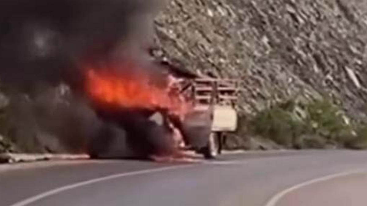 Hatay'ın Yayladağı ilçesinde seyir halindeki kamyonet, motor kısmından alev alarak yandı. İtfaiye ekiplerince söndürülen yangında araç, kullanılamaz hale geldi.