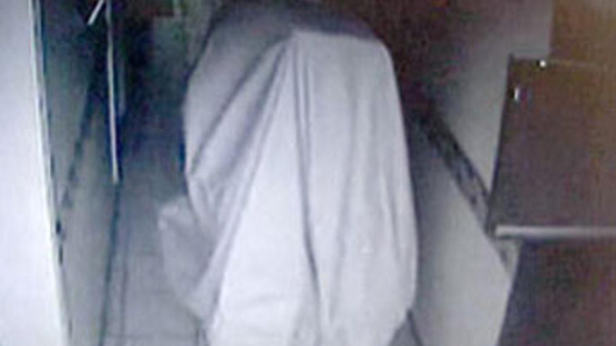 hırsız çalmak istediği güvenlik kamerası ile görüntülendiğini göz önüne alarak kendisini gizlemek için içeride beyaz bir örtü ile dolaştığı belirlendi.
