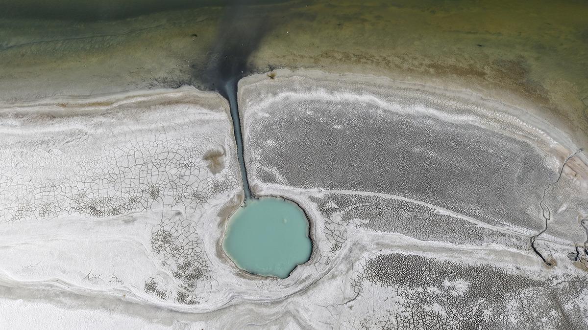 Gölün özellikle kuzey bölgelerinde su çekilmiş alanlardan geriye kalan ve 'Burdur Gölü'nün gözyaşları' olarak nitelendirilen küçük su öbekleri ile 10 yıl önce etrafı suyla kaplıyken çekilen sularla karada kalan küçük adacık, görüntülendi.