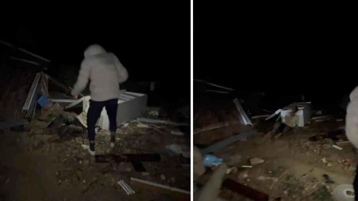 Hortum sırasında konteynerle birlikte savrulan vatandaş, olayın ardından çevrede arama yapan mahalle sakinlerinin dikkati sayesinde bulundu. O anlar cep telefonu ile kaydedildi. Parçalanmış konteyneri görerek içinde kimsenin bulunup bulunmadığını araştıran mahalle sekinleri, besici Ömer Çam'ı bitkin ve yaralı halde oturmuş halde buldu.