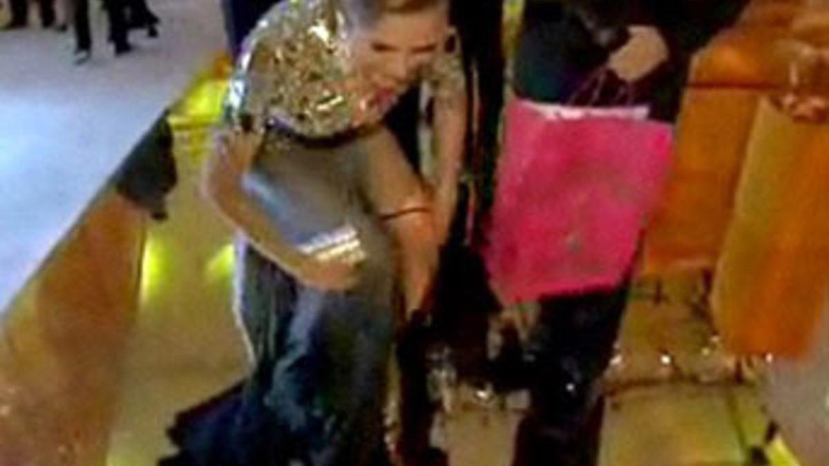 Elton John'ın düzenlediği partiye davetli olan Klum, burada The Tonight Show with Jay Leno adlı şov programının muhabiri Ross Matthews ile karşılaştı. Matthews, partideki ünlü isimlerin yanına gidip, onlardan Jey Leno adına hatıra eşyaları topladığını söyledi. Klum'da İç çamaşırını orada çıkartarak verdi...