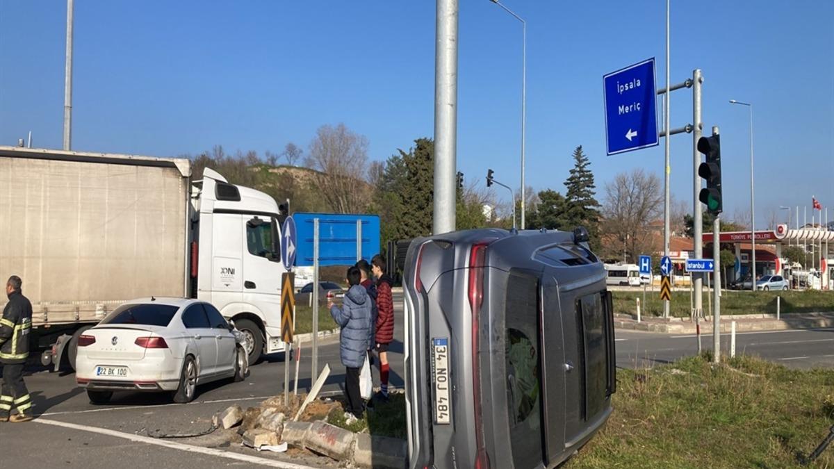 Kaza, saat 16.30 sıralarında İpsala ilçesindeki Dörtyol Kavşağı’nda meydana geldi. İpsala’dan Keşan yönüne giden E.Ö. yönetimindeki 34 NOJ 484 plakalı otomobil, kavşaktan Enez istikametine dönüş yapmak isteyen R.Y. idaresindeki 22 BK 100 plakalı otomobille çarpışarak, devrildi.
