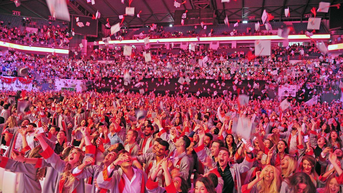 İSTANBUL, (DHA) - İSTANBUL Kültür Üniversitesi’nin (İKÜ) mezuniyet töreni Sinan Erdem Spor Salonu'nda gerçekleşti. Törende 3 bin öğrenci kep atarken, 12 binden fazla aile de bu özel günde çocuklarını yalnız bırakmayarak heyecanlarına ortak oldu.