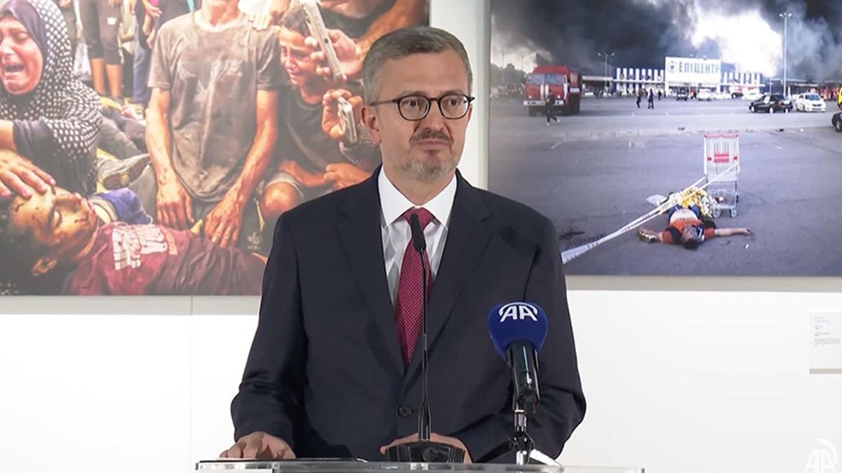 "Algıyla gerçek arasındaki mesafeyi kısaltan şey fotoğraf olur. Buna, bugün sergide hep beraber gözlemleyeceğiz ve tanık olacağız. Bunun bir belge özelliği taşıdığını ayrıca belirtmem gerekir. Yani 'Kanıt'. Biliyorsunuz, Anadolu Ajansı da Gazze'de ortaya koyulan soykırımı kitaplaştırdı ve adlarından bir tanesi de 'Tanık'. Elbette 2 yıla yakın süredir Filistin'de, Gazze'de yapılan mezalim içimizi sızlatıyor. Öfkemizi kabartıyor ve bir taraftan da ne yazık ki buna dair çok çarpıcı fotoğraflar ortaya çıkıyor. Neticede bu fotoğraflar 63 binden fazla insanın katledildiğini, açlığın silah olarak kullanıldığını, milyonlarca Filistin'in türlü mezalime maruz bırakıldığını tüm dünyaya gösteriyor. Bırakın göstermeyi artık haykırıyor."