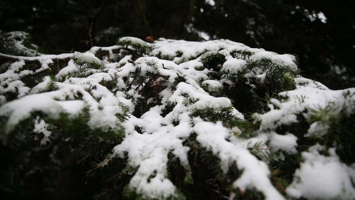 Kar yağışının ardından yüksek kesimlerdeki çam ağaçları beyaz örtüyle kaplandı.