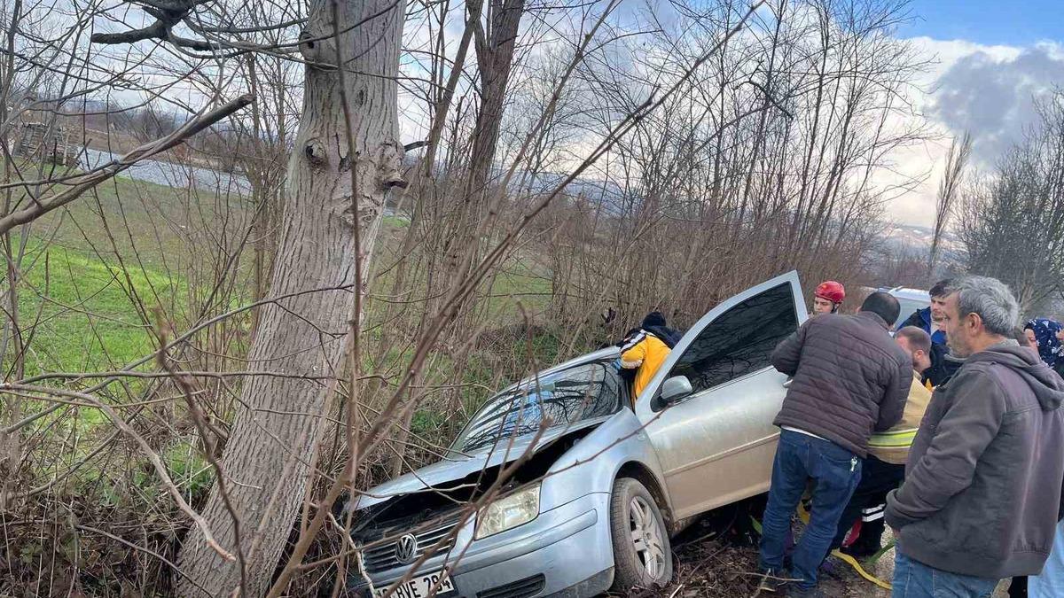 Edinilen bilgilere göre, İnegöl’e bağlı kırsal Kınık Mahallesi yolu üzerinde seyir halinde olan Sevda T. (44) yönetimindeki otomobil, sürücüsünün direksiyon hâkimiyetini kaybetmesi sonucu sulama kanalına düştü. Ağaca çarparak duran otomobilde sürücü yaralandı.