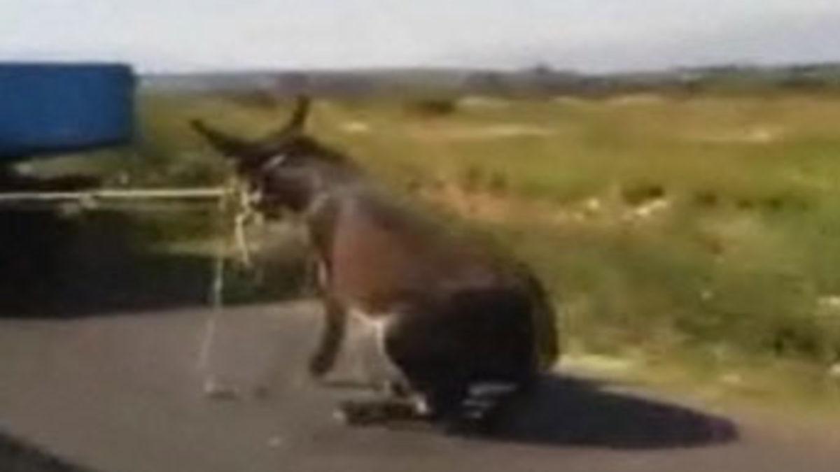 Dağlarındaki başı boş eşekleriyle ünlü eski Yugoslavya cumhuriyeti Karadağ'da, aracın arkasına bağlanan eşeğin yolda sürüklenmesi büyük tepki çekti.