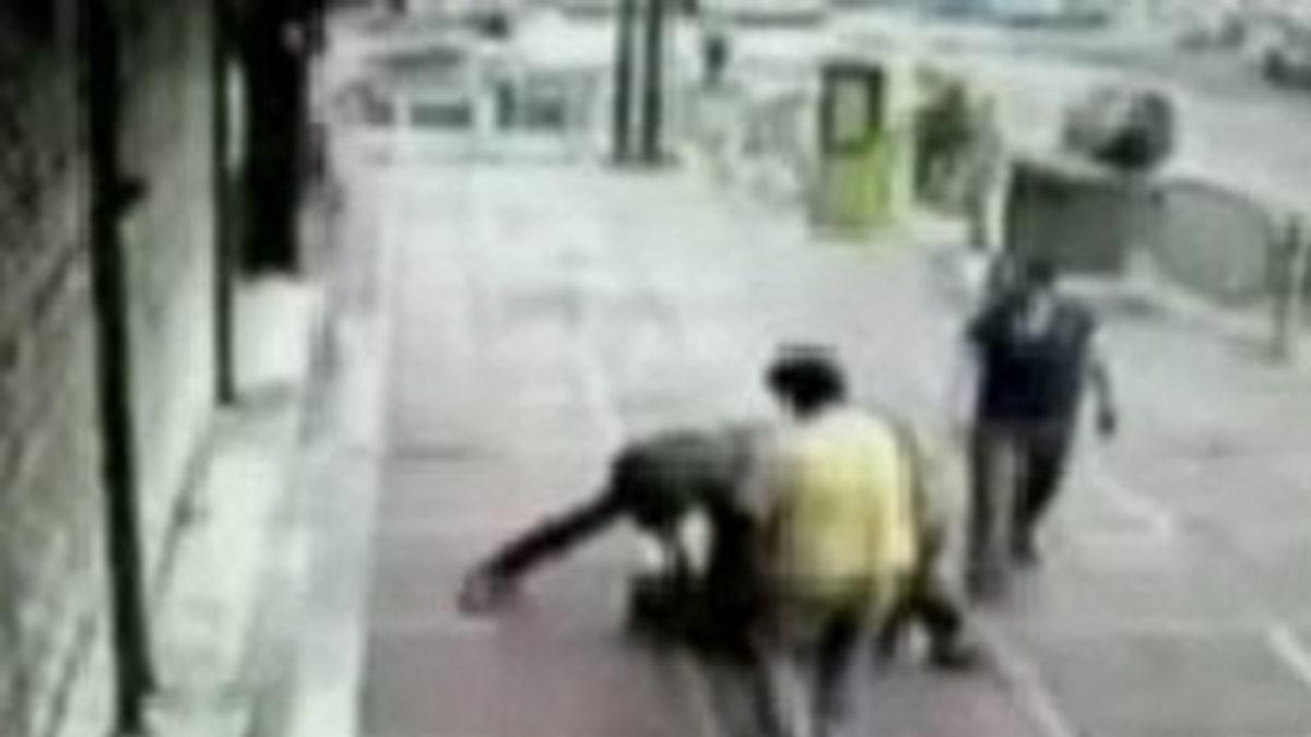 Vatandaşların müdahalesine bıçakla karşılık veren gaspçılar güvenlik kameralarınca görüntülendiklerinden habersiz olarak adamı yere yatırarak ceplerinden parayı aldı.