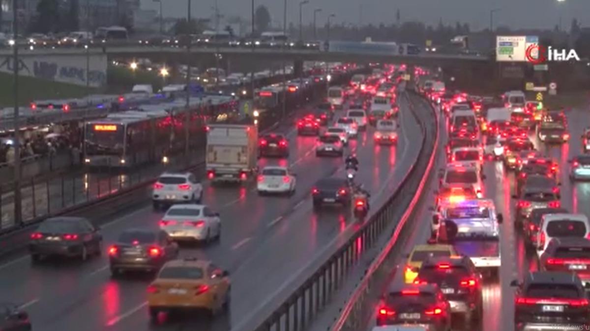 Yoğunluğun en fazla olduğu noktalardan biri olan D-100 Karayolu Zeytinburnu Cevizlibağ mevkiinde her iki istikametinde uzun araç kuyrukları oluştu.