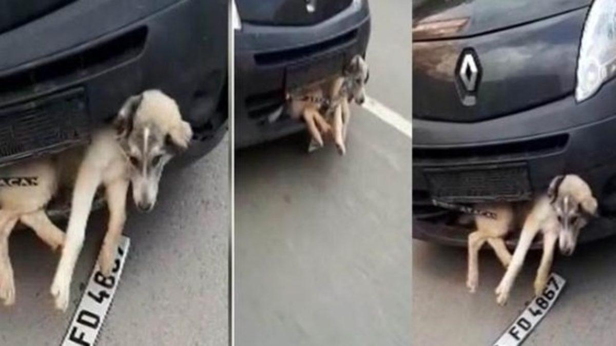 Bu sırada kayıtta olan Şahin, araç durduktan sonra köpeğe yardım etmek için video kaydını sonlandırarak, köpeği sıkıştığı yerden çıkartıyor.