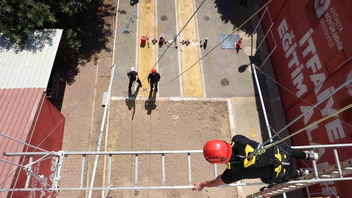 Tüm sınav parkurlarının kayıt altına alındığı uygulamalı sınavda, itfaiye eri adayları büyük bir çaba harcıyor. Adaylar, hazırlanan parkurda yangın ve doğal afetlerde karşılaşabilecekleri her türlü zorluklar mücadele ediyor. İtfaiye adayları, parkurda araç kullanma, yükseğe tırmanma, yangın hortumu taşıma, havuzdan çıkma, maketten insan taşıma, kapalı alan gibi mesleki görev süresince mücadele edeceği zorlu olaylardan başarıyla çıkmak için zamanla yarışıyor. Tüm bu süreçlerden sonra 225 aday arasından başarılı olan 45 itfaiye eri, Antalya Büyükşehir Belediyesi itfaiye teşkilatının kadrosuna katılacak.
