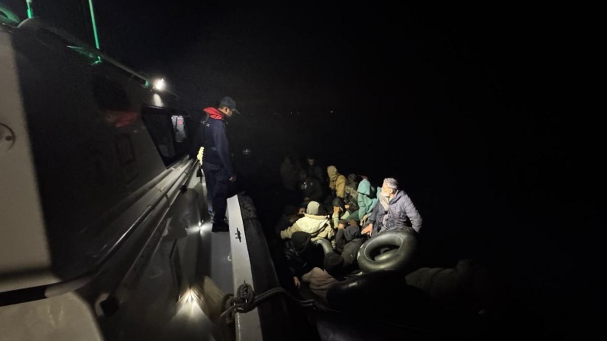 Ekiplerce durdurulan hareketli lastik bottaki 4'ü çocuk 31 düzensiz göçmen yakalandı.