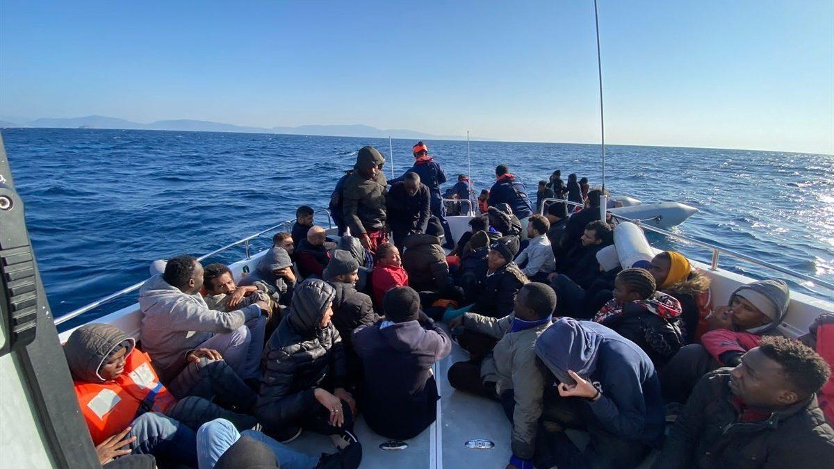 Sahil Güvenlik Komutanlığı ekipleri, 28 Ekim saat 09.50 sıralarında, Seferihisar ilçesi açıklarında, iki lastik bot içerisinde bir grup düzensiz göçmen olduğu bilgisinin alınması üzerine harekete geçti.
