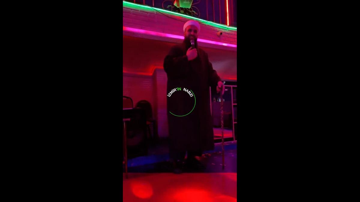 Kamuoyunda 'tebliğciler' olarak bilinen bir grup bu sefer de İzmir'de görüldü. Bir eğlence mekanında sahneye çıkan bastonlu ve cübbeli bir kişi, eline mikrofonu alarak konuşma yaptı.