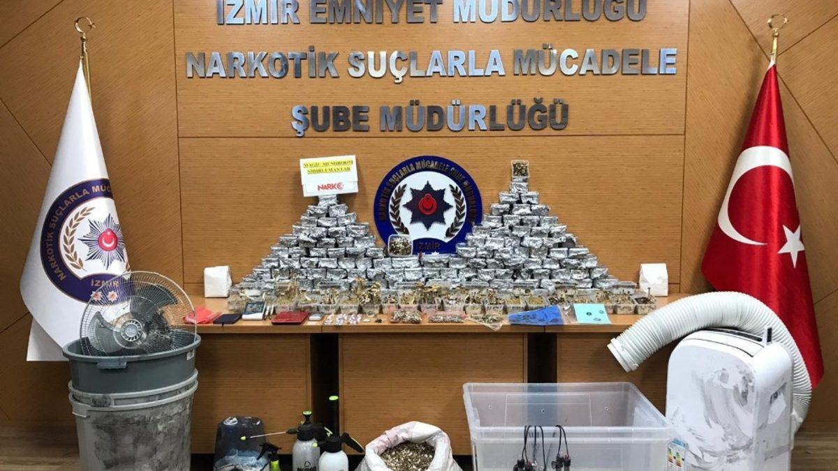 Narkotik Suçlarla Mücadele Şube Müdürlüğü ve İstihbarat Şube Müdürlüğünün ortak gerçekleştirdiği çalışmalar ile uyuşturucu madde imal veya ticareti yapan şahıslara yönelik 16 Mart ve 17 Mart tarihlerinde İzmir’in çeşitli noktalarında operasyonlar gerçekleştirildi. Operasyonlarda 195 adet ve 123,11 gram “Magic mashroom” isimli uyuşturucu mantar maddesi, “Magic mashroom” isimli mantar maddesini yetiştirmek için kullanılan düzenek ve 45 adet sentetik hap ele geçirildi. Gerçekleştirilen operasyonlarda 11 şahıs gözaltına alındı.