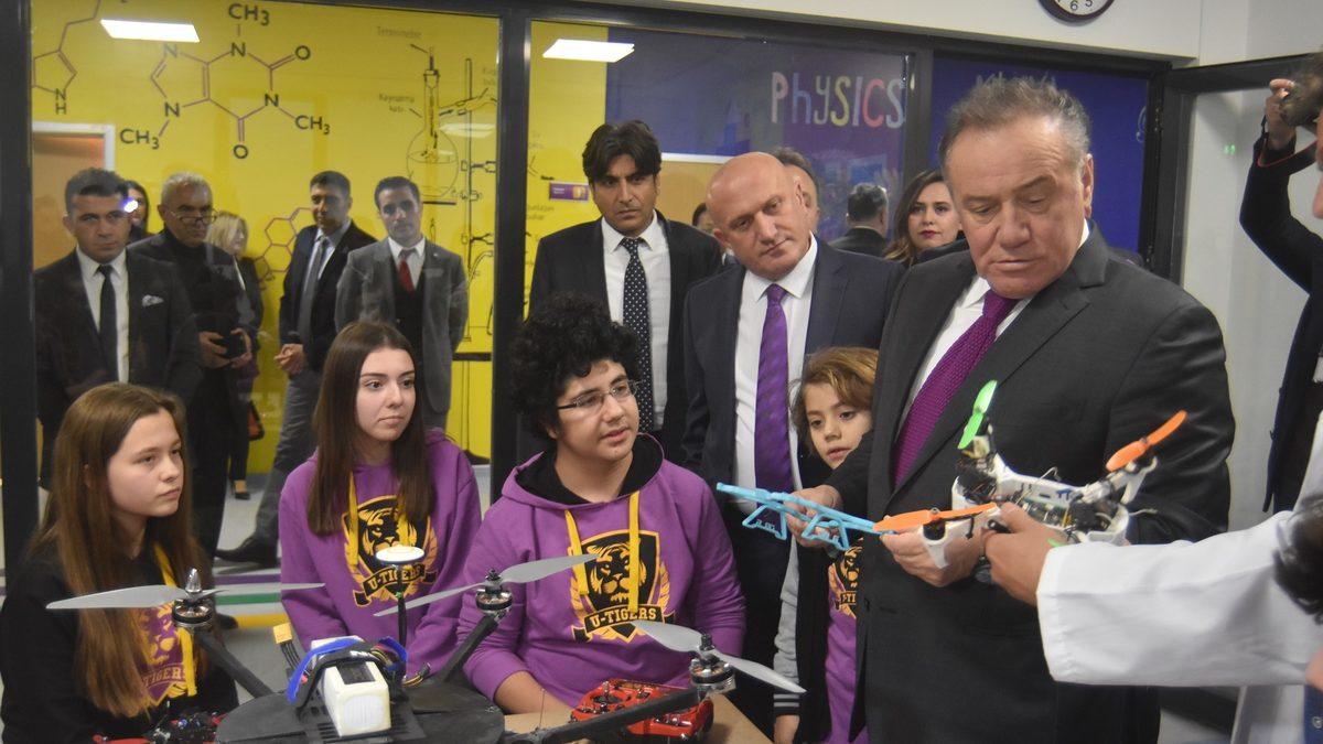 Açılış töreninden önce, öğrencilerin okullarında kendi teknolojilerini ürettikleri Drone Atölyesi’ni ziyaret eden BUEK Başkanı Enver Yücel, öğrencilerle bir araya geldi. Dijital çağın eğitim sistemlerinin yapısını da değiştirdiğine değinen Yücel; “Narlıdere Kampüsümüz okul öncesinden lise sona kadar, içerisindeki laboratuvarlar ve imkanlarla bugün dünyanın en iyi okullardan daha üstün yanları olan, eğitim sistemleri açısından da mükemmel olan bir okul. Okulumuzda bir Drone Laboratuvarı var. Öğrencilerimiz burada sadece drone uçurmayı değil, drone üreterek bunu yurt dışına pazarlamayı hedefliyorlar. Uğur Okullarının 50 yıllık bir birikimi var. O birikimle geleceğe yön veren çocuklarımızı yetiştirme gayreti içerisindeyiz. STEM'i en iyi kullanan okulların başında geliyor Uğur Okulları. Narlıdere'deki kampüs örnek gösterilecek bir okul. Biz her yeni kampüsümüzü bir diğerinden farklı yapıyor, çeşitliliğini artırıyor ve çağın gerekliliğine uygun hale getiriyoruz. Yarının sorunlarını çözecek bireyler yetiştiriyoruz. Narlıdere Kampüsümüzde de okul öncesi ve ilkokul kademeleri mevcut. Okul öncesine çok önem veriyoruz. Bireyin hayatında okul öncesi eğitimin çok önemi var. Biz de bu konuya büyük yatırımlar yapıyoruz” diye konuştu.