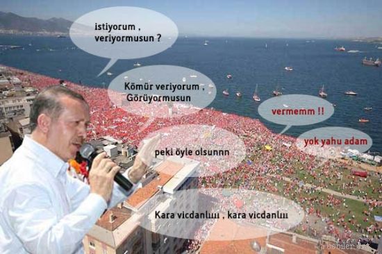 Kişisel iletilerde en çok Başbakan Erdoğan'ın `Gavur İzmir' imasında bulunduğu iddia edilen konuşmasını anımsatanlar yer aldı.