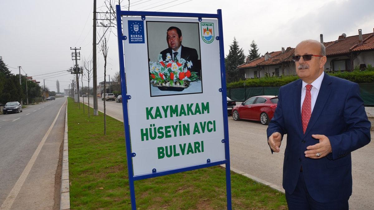 İznik’te 6 Ekim 2003 ile 13 Ağustos 2008 tarihleri arasında kaymakamlık yapan ve ilçenin tarihi ile ilgili önemli çalışmalar yürüten merhum Hüseyin Avcı’nın ismi ilçedeki Yenişehir Kapı ile İznik Gölü’nü birbirine bağlayan bulvara verildi. İznik Belediye Başkanı Osman Sargın ‘Kaymakam Hüseyin Avcı Bulvarı’ ile ilgili yaptığı açıklamasında şunarı kaydetti: