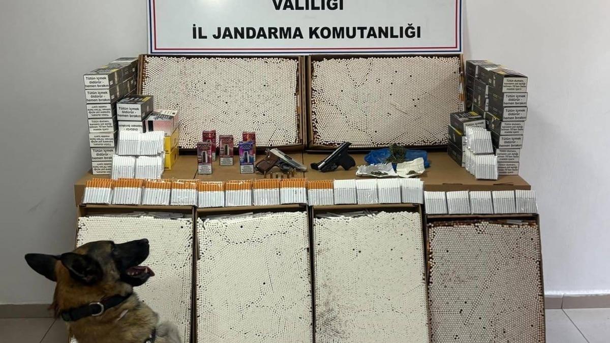 Edinilen bilgilere göre, İl Jandarma Komutanlığına bağlı ekipler aldıkları bir ihbar üzerine harekete geçti. Ekipler kent merkezinde iki farklı adrese yaptıkları baskında 72 bin 940 adet içi tütün doldurulmuş makaron, 5 adet elektronik sigara, 18 gram kubar esrar, 3 adet ruhsatsız tabanca ve mermiler ele geçirdi. Olayın ardından E.A. ve F.Ç. isimli şahıslar gözaltına alındı. Şahıslar işlemlerinin ardından adliyeye sevk edildi.