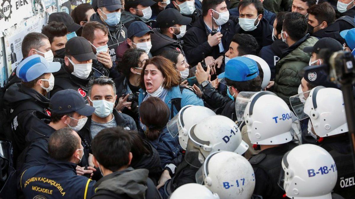 Polis eylemlere, 'kapalı ve açık alanlarda yedi gün süreyle her türlü toplantı ve gösteri yürüyüşünün yasaklanması' gerekçesiyle müdahale etmiş, gruba dağılmaları çağrısı yapmıştı.