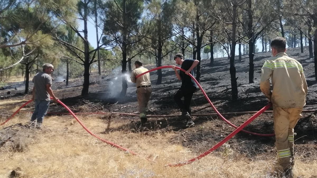Yaklaşık 2 hektar ormanlık alanın zarar gördüğü bölgede soğutma çalışmaları sürüyor. (AA)