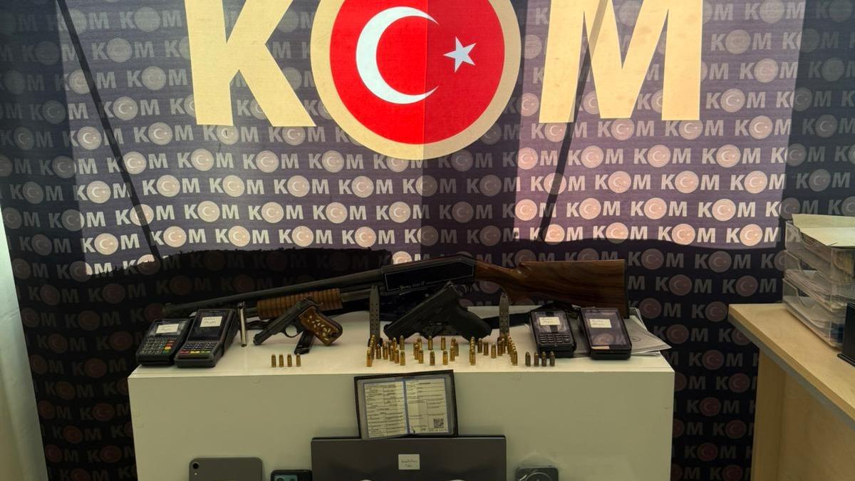 8 şüphelinin gözaltına alındığı operasyonda 2 ruhsatsız tabanca, av tüfeği, kurusıkı tabanca, 15 pos cihazı, senet, tapu sözleşmeleri ve dijital materyaller ele geçirildi.