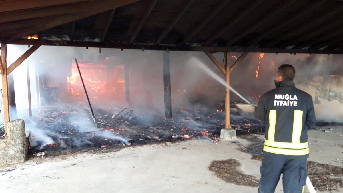 Mehmet ÇİL/DATÇA (Muğla), (DHA)- MUĞLA'nın Datça ilçesindeki, kampingin depo olarak kullanılan kapalı bölümünde çıkan yangın kısa sürede büyüdü. Depodaki şezlong ve şemsiyeler yanarak kullanılmaz hale gelirken, alevler itfaiye tarafından 45 dakikalık çalışmayla söndürüldü.