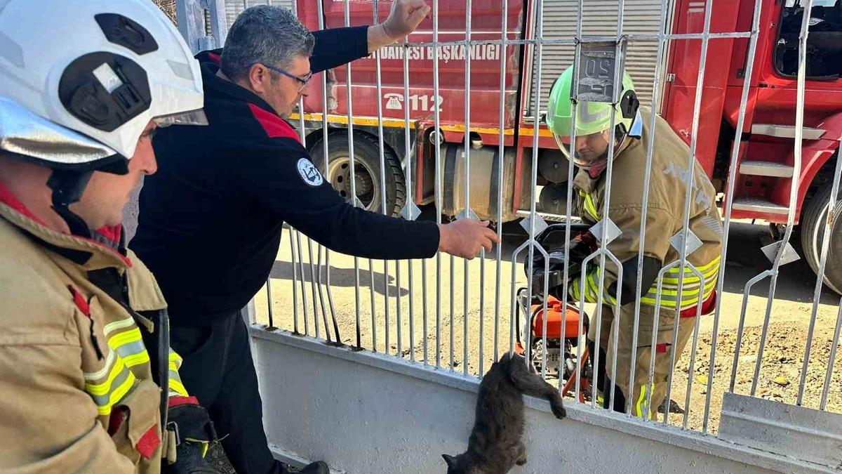 Kırıkhan ilçesi Gazi Mahallesi’nde kapı korkuluğuna sıkışan kediyi kendi imkanlarıyla kurtaramayan vatandaşlar durumu itfaiye ekiplerine bildirdi. Kedi, Hatay Büyükşehir Belediyesi itfaiye ekiplerinin müdahalesiyle sıkıştığı yerden kurtarıldı. Sağlık kontrolleri yapılan kedi doğal yaşam alanına bırakıldı.