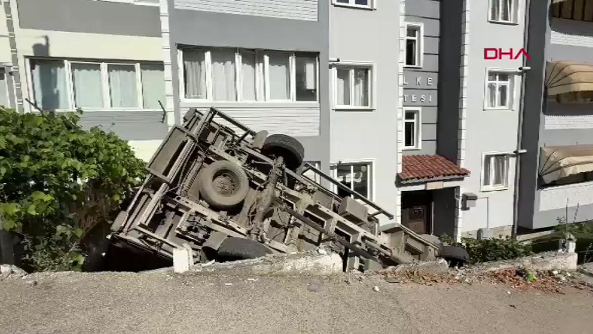 Binalarda oturanlar gürültüyü duyup pencereye koştuklarında kamyonun bahçeye düştüğünü gördü. İhbar üzerine adrese polis ve itfaiye ekipleri sevk edildi. Kazada kamyonun çarpması nedeniyle bir evin balkonunda hasar oluştu.
